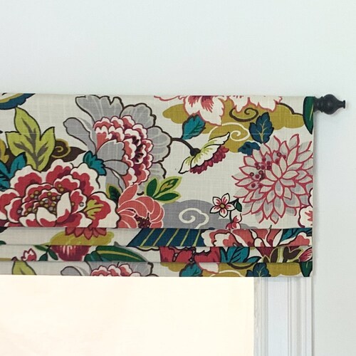 Custom Flat Roman Shade Chinoiserie Fan Fabric Designer Etsy